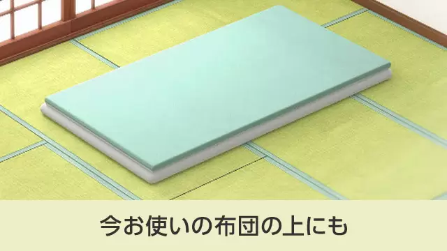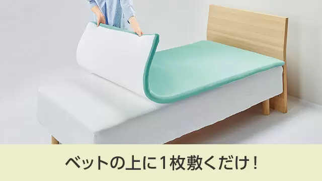 - 今お使いの布団やベッドに敷くだけ。買い替え不要でお手軽。